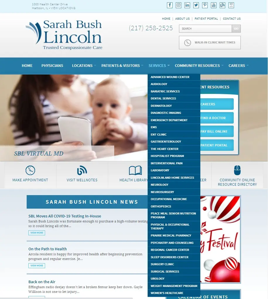 Sarah Bush Lincoln is a 149-bed, not-for-profit, regional hospital centrally located in East Central Illinois' Coles County.  It is a high-performing rural healthcare provider. Imaginary Landscape has been their website vendor of record since 2010.